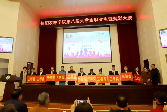 On November 4th, 2020 our university has held the8thGraduatesVocationDesigningCompetition in the campus.The final round competition was conducted in thelibrary, while fourteen competitors enter the finals.Admission and Employment Office presided over the competition.Some of the university leaders, Vice Chairman of University Council Wang Qingbing, VicePresident Zhao Yipeng and Wang Wanling participated in the awardingceremony.Eventually, Wang Jing, a student form School of Food Science, won the first prize.ThelecturersWang Ziwei from the School of Food Science, Xu Huajin from the School of Information Engineering and Han Jiangxia from the School of Foreign Languages received the excellent guidance prize.