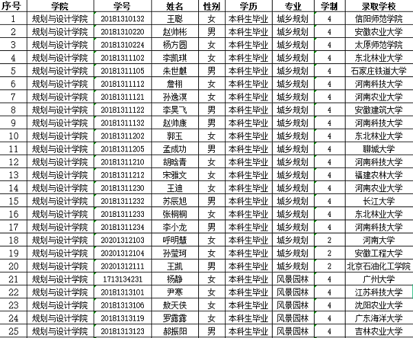 规划与设计学院2022届毕业生考研录取名单