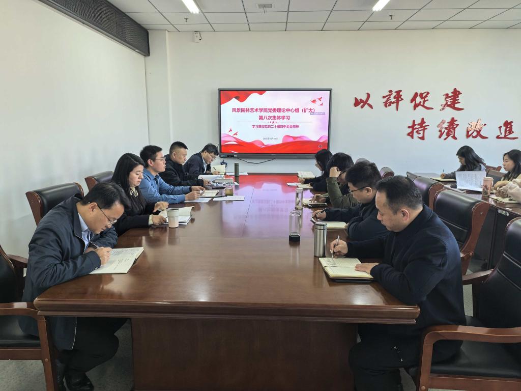 10月28日下午,风景园林艺术学院党委在艺术楼707会议室召开2025年理论学习中心组(扩大)第八次学习,集体学习研讨党的二十届四中全会精神。会议由风景园林艺术学院党委书记张广强主持,中心组成员参加会议,副科级及以上干部列席。