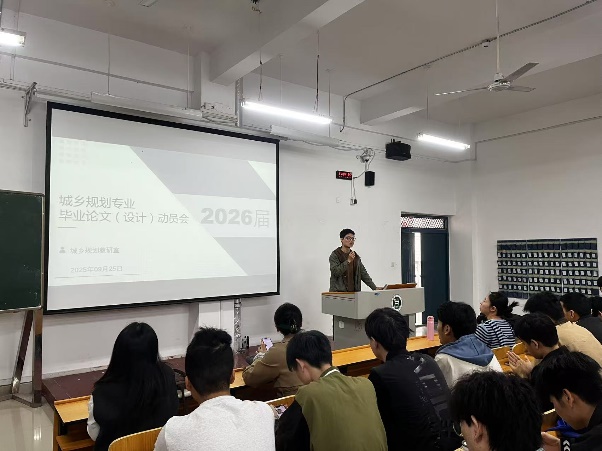 为推动学院本科生设计工作的顺利开展,提升毕业设计质量。2025年9月22日-26日,城乡规划、风景园林、环境设计、视觉传达设计专业召开2026届毕业论文(设计)动员大会,重点部署毕业设计相关工作安排。本次动员大会由2026届全体毕业生及各位毕业设计指导教师共同参加,旨在帮助学生们理清毕业设计思路,明确工作任务,为即将展开的毕业设计奠定坚实基础。