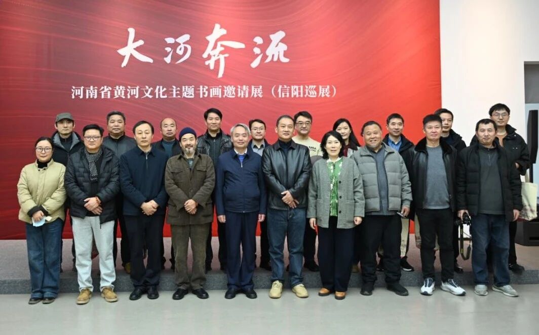 2025年12月19日上午,“大河奔流”河南省黄河文化主题书画邀请展(信阳巡展)在信阳市文学艺术院隆重开幕。我院作为特邀高校单位参与本次活动,副院长张志锋、教师侯泽涛、赵心怡及二十余名学生代表共同参加开幕式。