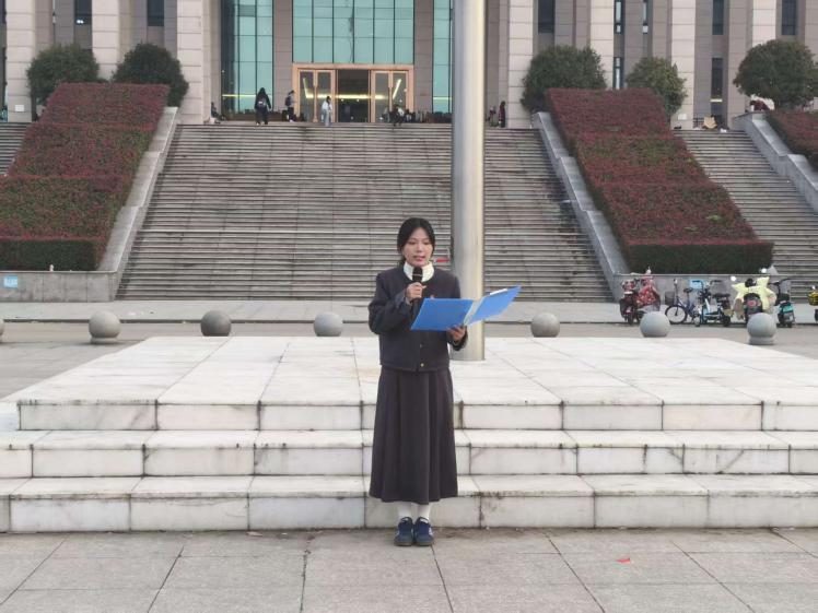 伴随着雄伟庄严的《义勇军进行曲》,五星红旗冉冉升起。国旗飘扬,国歌雄壮,全场肃穆,行注目礼。学院党委副书记耿城围绕“清朗网络筑根基,德艺双馨谱新篇”发表讲话,他强调了网络空间是亿万民众共同的精神家园,但绝不是法外之地,也不是道德的真空地带。并呼吁学生们坚守初心,在享受网络便捷的同时,更要担负起建设清朗网络空间的责任,努力成为有高度安全意识、有文明网络素养、有守法行为习惯、有必备防护技能的“四有”好网民,为共同守护我们美好的精神家园贡献我们的青春力量!随后,学生代表陈凯乐同学发言,她结合网络谣言、暴力、诈骗等现象,生动阐释了网络空间“红绿灯”的深刻内涵,呼吁同学们要遵循“绿灯”指引,积极传播正能量,让网络空间成为充满善意与知识的“阳光大道”。