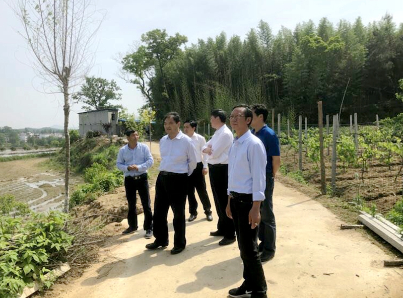 5月13日,党委副书记扶庆带领相关专家到商城县金刚台镇杜畈村本森生态观光园指导美丽乡村建设。