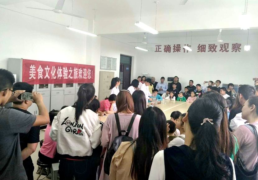 觅食趣、赏食韵、品食情,5月12日,食品学院食品科技社团和食品烹饪社团邀请羊山外国语小学学生、教师和学生家长近八十人到实验楼实地参观体验美食文化之旅。本次活动由食品学院副院长谌昌强、学院团总支书记王清、烹饪教研室主任王宝刚服务讲解,活动受到了学校和学院领导的大力支持。