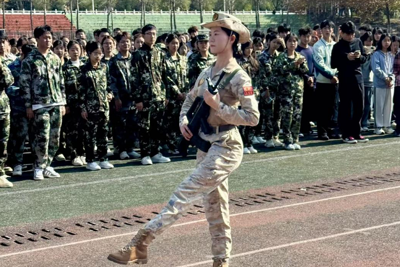 为厚植青年学子爱国情怀,强化国防教育实效,11月4日中午,必赢766net手机版在田径运动场成功举办“迷彩青春,强国有我”国防教育实践活动。活动邀请参加九三阅兵女民兵方阵队员王雪君与100名在校学生共同参与,党委学工部、食品科学与工程学院相关负责同志参加。活动以“精神感召+技能体验”为主线,为师生打造了一堂生动而深刻的沉浸式国防教育课。