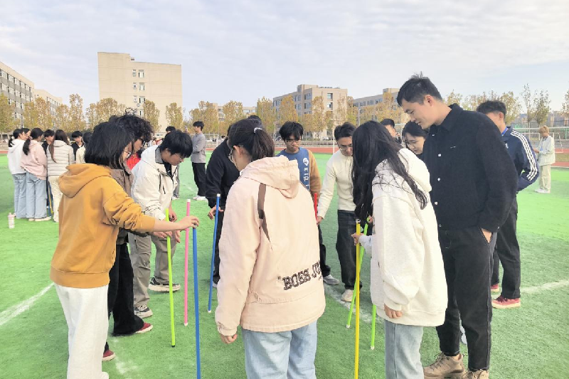 在心理素质拓展区,来自各学院的16支参赛团队在“不倒森林”“一圈到底”“珠行万里”“击鼓颠球”“企鹅漫步”“齐心运球”等六个协作挑战项目中全情投入、默契配合,在欢乐竞技中彰显了团队协作的力量与青春活力,让活动成为一场凝聚人心、展现风采的精彩盛会。在艺术涂鸦区里,大家手握画笔尽情释放灵感,缤纷颜料与画纸激情碰撞,既铺展开一场绚烂吸睛的视觉盛宴,更化作一次治愈心灵、舒缓压力的沉浸式体验。在趣味游戏区,欢乐踢毽子比拼、经典扔沙包互动、趣味解压气球等活动现场热闹非凡,笑声不断。智能心理健康体检车搭载的AI心理测评系统、智能心理减压舱、脑波闪电侠等设备,凭借科技赋能的创新心理服务,成功吸引了广大师生的目光。