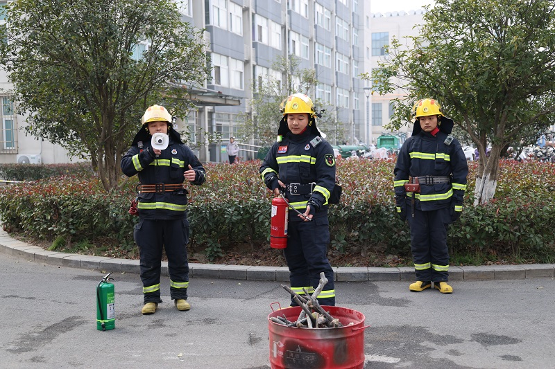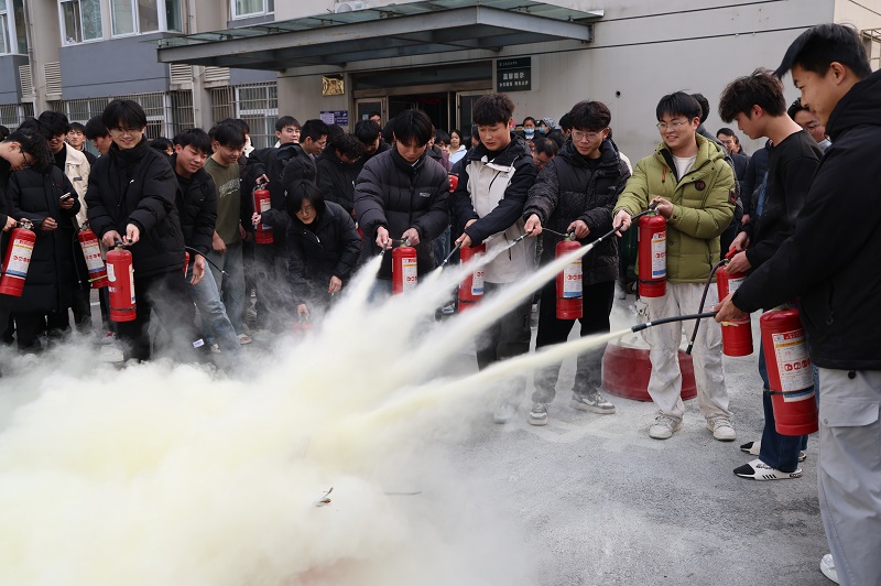 随后,信阳市消防救援支队官兵结合公寓楼建筑特点,现场讲解火灾逃生技巧,并演示灭火器等常用消防器材的使用方法。校领导带头参与实操训练,师生积极进行灭火器材操作体验。