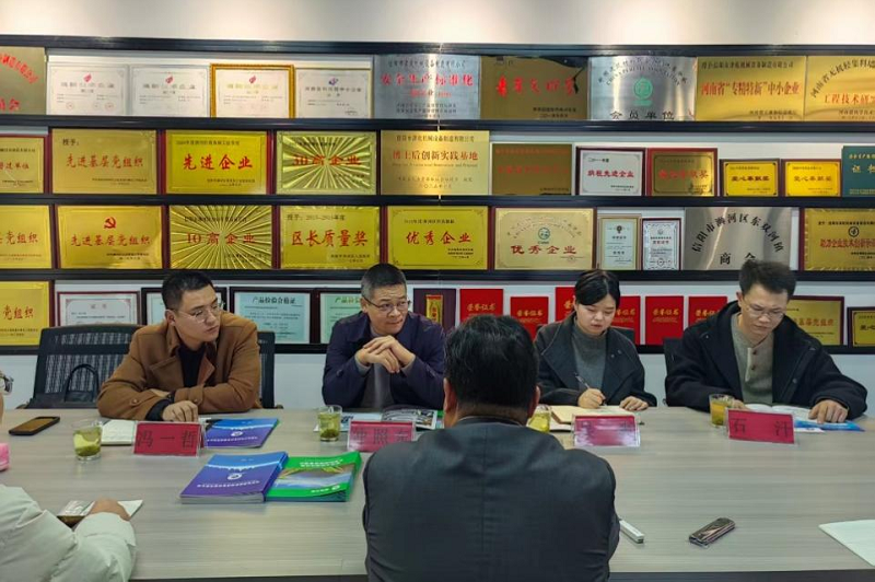 11月12日下午,管理学院科技服务团队一行四人前往信阳市津乾机械设备制造有限公司开展专项科技服务。