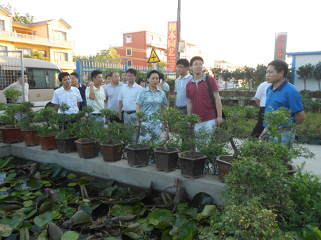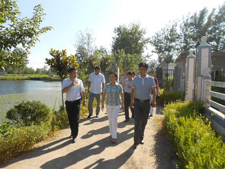 7月29日下午,专家团成员在固始县副县长鲁新建、县委农办主任胡?苛痢⑺?产局局长陟劲松、农业局副局长祁道昌、科技局副局长张向华等相关部门负责人的陪同下,实地考察水产养殖、园林花卉种植基地、科技扶贫村、科技示范园区等。每到一处,尹新明副校长都要详细了解和察看基地建设、生产能力、人才保障及技术需求等情况,并要求同行的相关专业技术人员认真观摩与考察,准确找到技术对接服务的切入点,以便加强校企合作、搭建产学研平台,为企业和种养殖大户提供更及时更有效更好的科技服务做好准备等。相关专业技术人员在认真观摩与考察的同时,进行取样分析,并就相关技术问题进行现场解答。