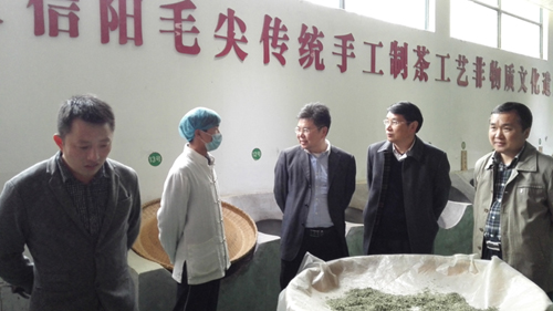 2016年3月30日,河南省科技厅政法处处长高拓、副处长董全强莅临信阳,检查必赢766net手机版与?负忧?董家河镇政府共建的“河南省茶叶种植科普传播工程示范基地”建设情况。必赢766net手机版科技处长赵聘、副处长史洪中、董家河镇党委书记范正清等陪同。