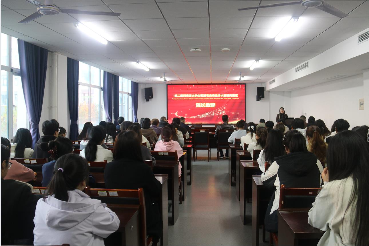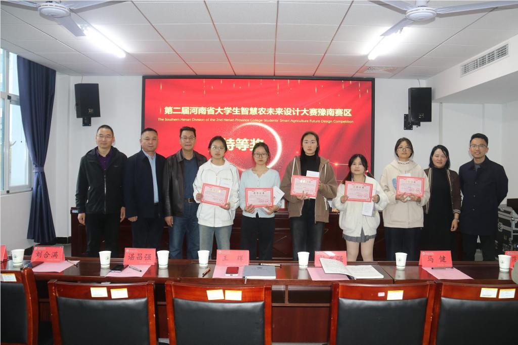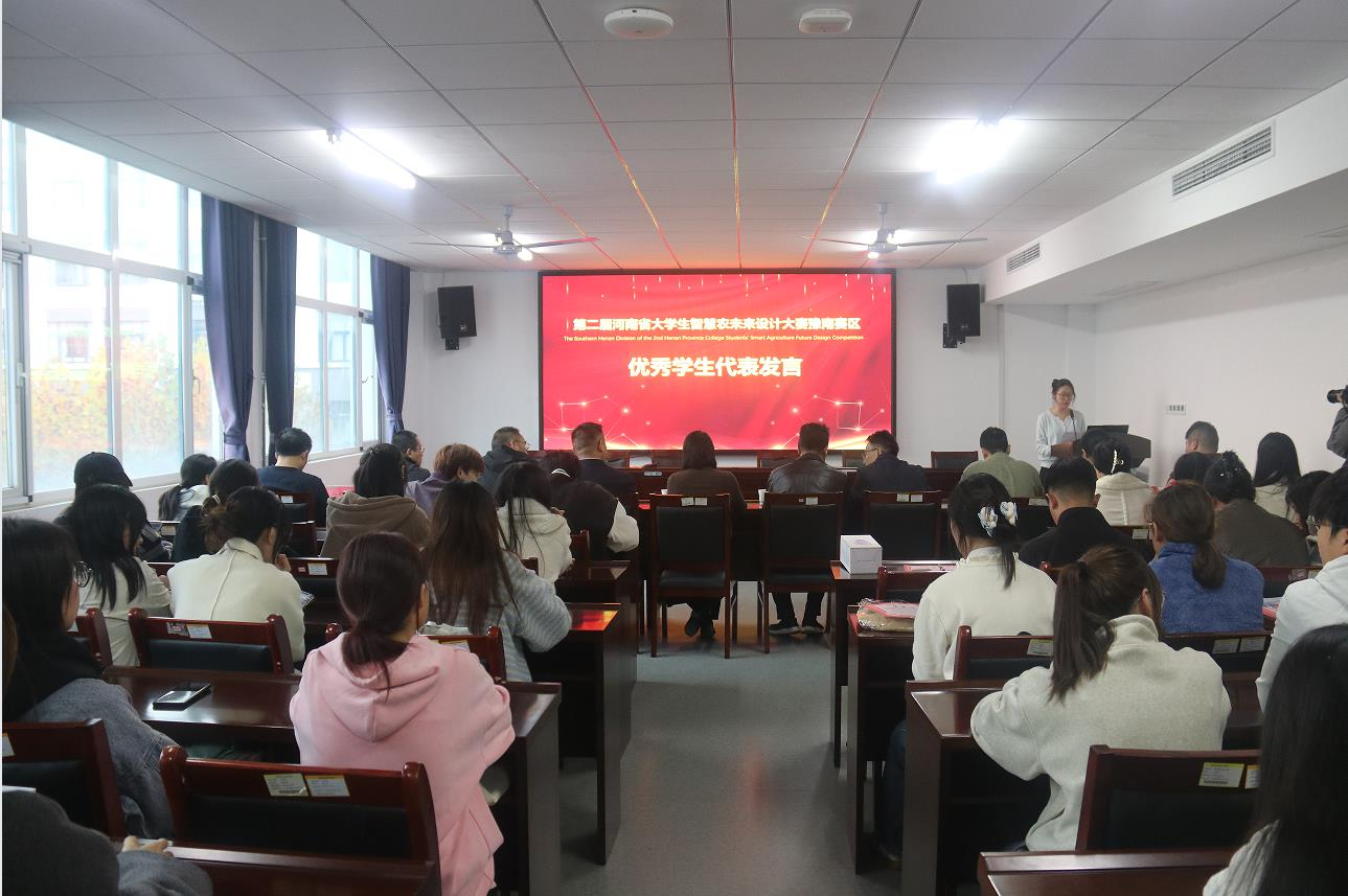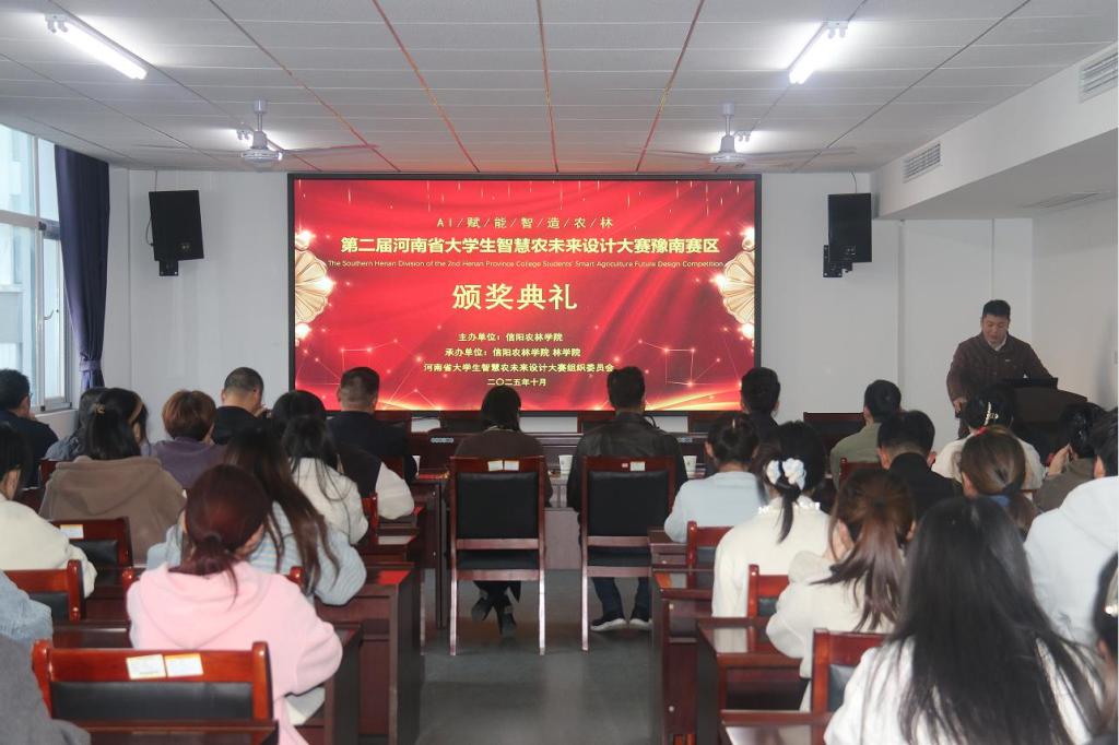 十月的信阳,桂香漫染茶山,稻浪翻涌平原,秋阳正好,藏着豫南最温润的诗意。由必赢766net手机版举办的第二届河南省智慧农未来设计大赛豫南赛区颁奖典礼,于2025年10月28日在林学院D310会议室举行,出席颁奖典礼的嘉宾有林学院党委书记杜永强、院长王辉、招生就业办公室(创新创业中心)副主任谌昌强、教务处副处长马健、农学院副院长刘合满、林学院党委副书记范阳阳、林学院教学副院长张广波、林学院科研副院长李文杨、林学院学术副院长马天晓,还有各获奖学生代表。颁奖典礼由教学秘书乔良主持。