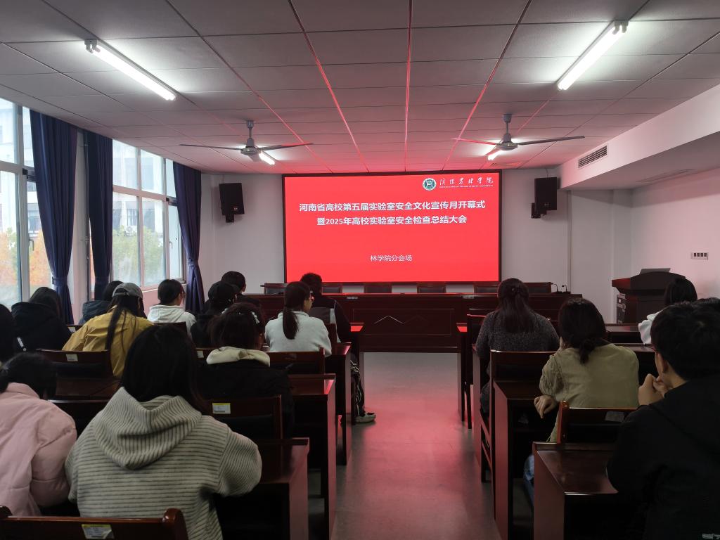 为深入贯彻落实省教育厅关于实验室安全工作的指示精神,全面加强我院实验室安全文化建设,提升师生安全防范意识和应急能力,20251017日下午15:00,林学院在实验楼D310会议室组织集中线上观看了河南省高等实验室安全文化宣传月活动开幕式。学院实验教学中心全体教师、专业教师及学生代表参加了本次活动。