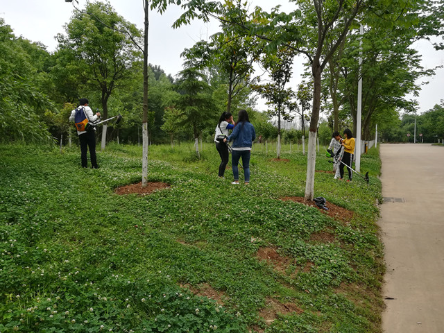 5月12-13日,社团组织10名同学使用锂电池割草机和铁锹等工具对香樟园杂草和杂灌进行清理。这是针对近期信阳雨水较多,避免林地爆发大规模病虫害而开展的。