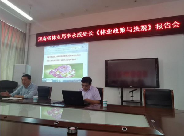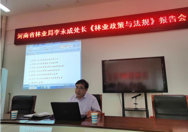 9月30日上午,林学院在科技楼1c501会议室举行《林业政策与法规》报告会,邀请河南省林业局李永成处长同志为全院教职工就《中华人民共和国森林法》等林业法律法规基本内容进行了解读。会议由林学院院长孙耀清主持,林学院书记赵师成、副院长王辉和全院没有教学任务的教职工参加会议。