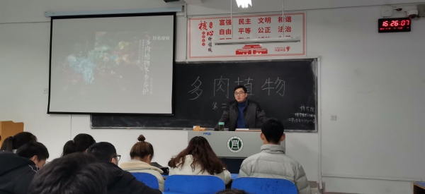 为了培养林学院学子对植物的兴趣爱好,增强林学专业认同度,丰富大家的课余生活,2019年12月20日下午,我院教师付满意在一教C201继续开展“多肉植物”兴趣培养课,19级林学对本、普本多肉兴趣小组成员和喜欢多肉的同学们参加了此次多肉知识科普课。