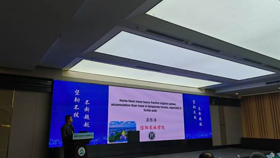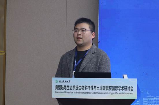 近日,我院教师梁陈涛赴杭州参加了由浙江农林大学林业与生物技术学院主办的“典型陆地生态系统生物多样性与土壤碳截获国际学术研讨会”(International Symposium on Biodiversity and Soil Carbon Sequestration of Typical Terrestrial Ecosystems),并于11月29日下午在大会主会场作题为《Herbs favor more heavy fraction organic carbon accumulation than trees in temperate forests, especially in fertile soils》的学术报告。