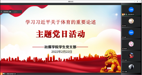 为进一步增强党组织和党员的凝聚力和战斗力,2月22日下午,融媒学院学生党支部开展“弘扬冬奥精神 凝聚奋斗力量”主题党日活动。