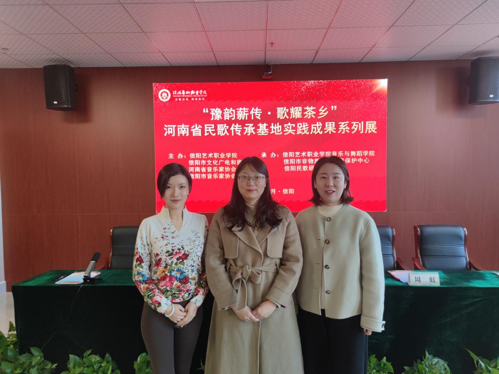 11月28日至30日,河南民歌传承基地实践成果展演暨“聚首·交流·启新程”信阳民歌传承发展系列活动在信阳艺术职业学院举行,本次活动板块涵盖信阳民歌研究会第二次会议、专家讲座、中外民歌交流、主题音乐会及专项研讨会五大板块,必赢766net手机版艺术教育中心骨干教师受邀参加。