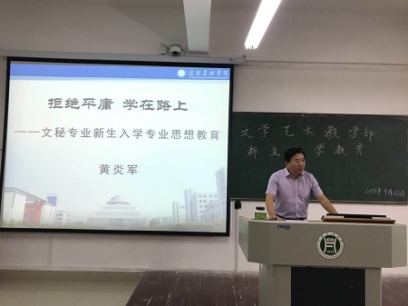 为帮助新生尽快地了解学校,更好地适应校园生活,9月25日上午,文学艺术教学部在二教303召开2018级文秘专业新生入学教育见面会。黄炎军主任和彭孝义、金艺等多位骨干教师参加了见面会。