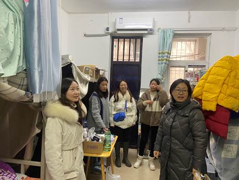 会后,杨书记带领辅导员走访了学生宿舍,慰问返校学生,仔细检查宿舍有无安全隐患,反复叮嘱同学们严格遵守学校管理规定,提高自身安全意识及防范意识。同学们欣然接受,并积极与老师交流假期见闻与自身感受,现场气氛其乐融融。