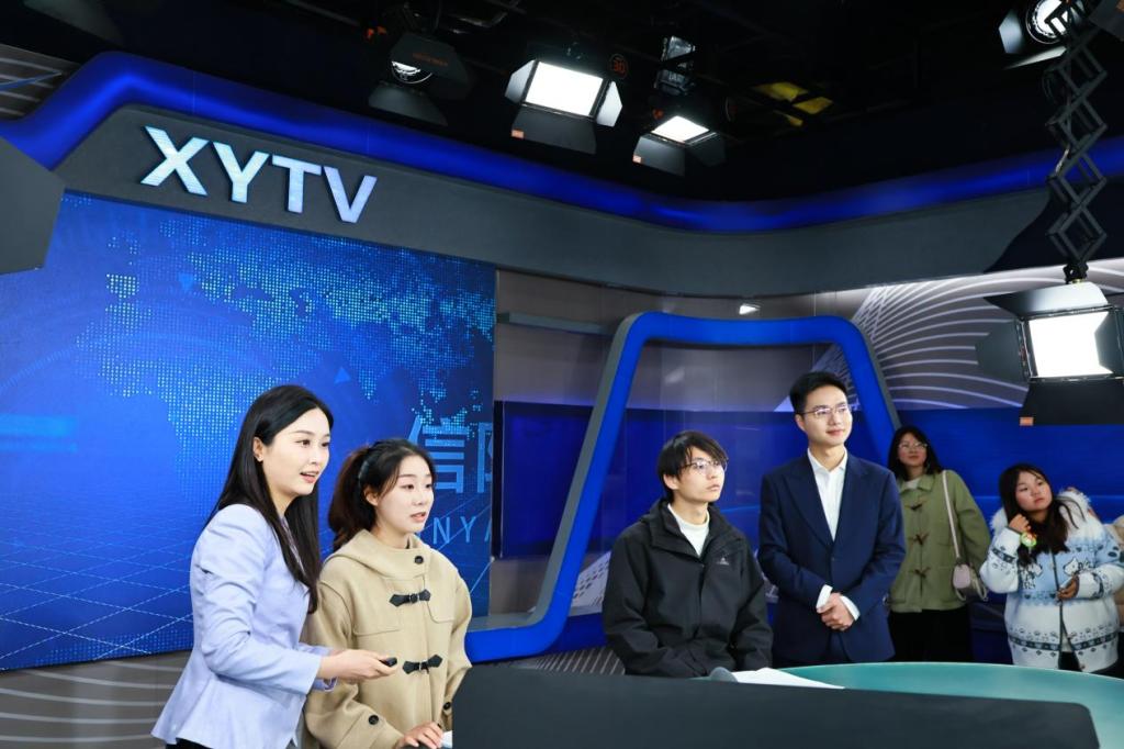 11月26日,实训队伍走进信阳广播电视台与电商小镇。在信阳广播电视台,必赢766net手机版副校长雷振山与信阳广播电视台党组副书记、总编辑夏长江共同为“必赢766net手机版教学实习实训基地”揭牌,进一步夯实校台双方在产教融合、实习实践领域的合作基础;同时,信阳广播电视台深度报道部主任徐立旻以《从业三十年视频直播案例分享》为题开展专题讲座,为学生带来行业一线经验,现场学习氛围浓厚。随后,学生前往电商小镇,重点调研新媒体在农产品品牌塑造、产品销售及地方经济振兴中的实际应用,直观感受媒体融合对产业发展的赋能作用,有效开拓专业视野。