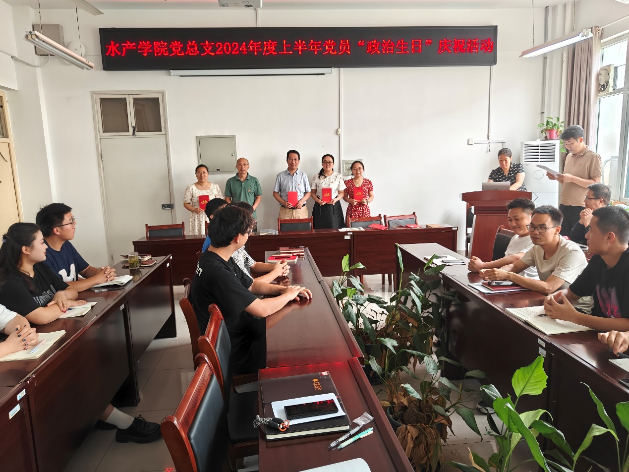 6月25日下午,水产学院党总支在2C328会议室开展2024年度上半年党员“政治生日”庆祝活动,为第一、二季度入党的16名党员集体庆祝“政治生日”。