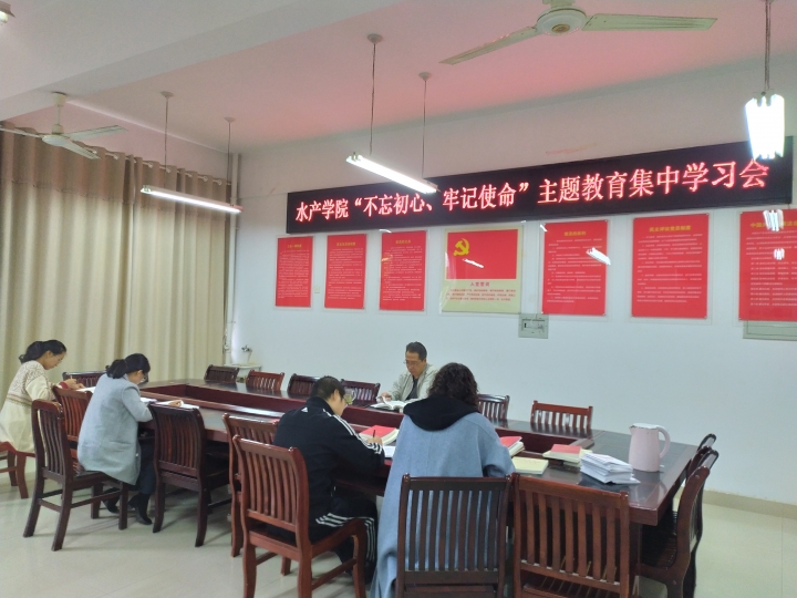 根据学院“不忘初心、牢记使命”主题教育安排,10月16日下午,水产学院党总支在党员活动室召开“不忘初心、牢记使命”主题教育集中学习会。水产学院党领导班子成员、中层副职考察对象、各支部书记参加了会议。会议由水产学院党总支书记郭旭升同志主持。