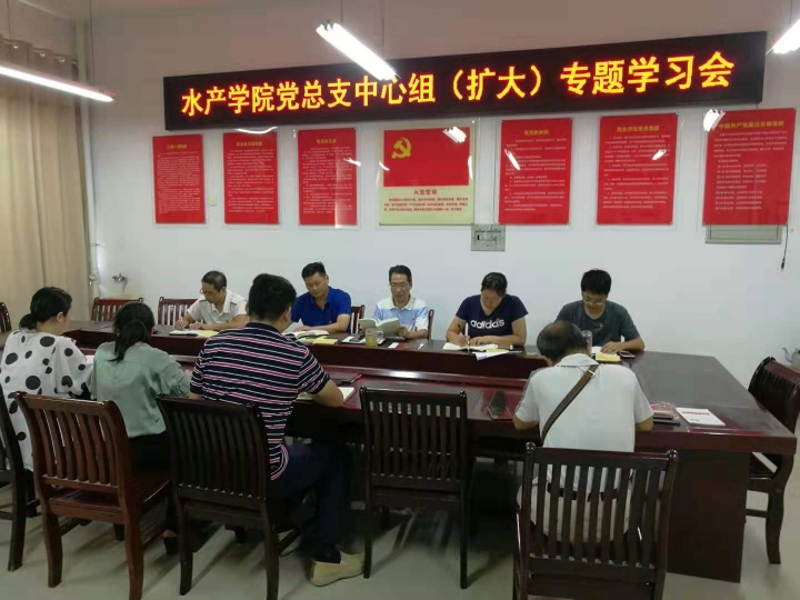 9月12日下午5点,水产学院党总支在党员活动室召开中心组(扩大)专题学习会。水产学院党总支委员、中层副职考察对象、各支部书记参加了会议。会议由水产学院党总支书记郭旭升同志主持。