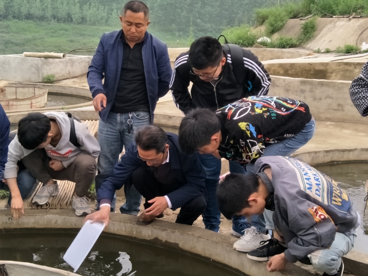 实习是学生从学校走向社会的桥梁,是将书本知识与生产实践真正融会贯通的过程。4月25日,水产学院院长杨东辉、党总支书记郭旭升、部分专业教师率15级水产养殖学(就业创业班)全体学生赴我院教学实习基地—罗山小龙山鱼类良种繁育场参观并指导学生实习。杨院长与第一批在此基地实习的同学们亲切交谈,了解他们的实习生活情况,鼓励大家吃苦耐劳,要在生产中不断学习和汲取鱼类繁育技能,提高专业实践能力。同时认真听取了实习单位的意见和建议,并就同学们在实习中出现的各种问题和困难同实习单位进行沟通解决,为同学们踏实安心实习提供良好的环境,确保实习单位生产井然有序进行。郭书记带领15级学生参观了繁育场,结合《鱼类增养殖学》课程知识与繁育实践,详细介绍了鱼类繁育设施及实际繁育过程中的注意事项,通过此次参观学习,不仅让同学们加深了理论知识学习的印象,也提高学生对本专业的了解和认识,增加学习兴趣和专业自豪感。同时,对学生了解社会、接触生产实际、加强劳动观念、培养动手能力和理论与实践相结合的能力等方面亦具有重要的意义。