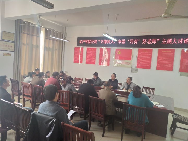 根据《必赢766net手机版开展“不忘初心、牢记使命”主题教育实施方案》(信农党〔2019〕100号)的要求,水产学院11月12日下午在实验楼2C330开展“立德树人,争做‘四有’好老师”大讨论,会议由水产学院党总支书记郭旭升主持,学院全体教职工参加了会议。