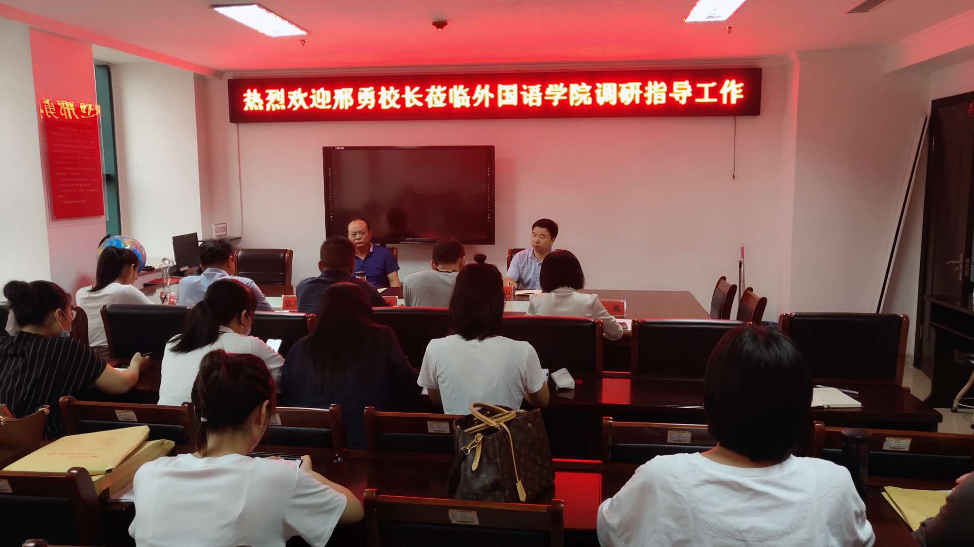 6月22日下午,校长邢勇在校办主任雷振山的陪同下到外国语学院调研指导工作。外国语学院班子成员及科级干部参加了调研座谈会,会议由外国语学院院长滕海主持。