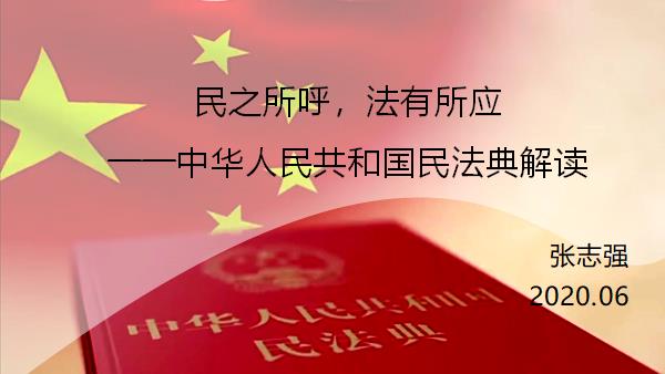 张志强书记以“民之所呼,法有所应——中华人民共和国民法典解读”为题,结合当下社会热点问题从民法典简介、内容普及和颁布意义三个方面进行全面阐述。《中华人民共和国民法典》被称为“社会生活的百科全书”,是新中国第一部以法典命名的法律,它在法律体系中居于基础性地位。《中华人民共和国民法典》共7编、1260条,各编依次为总则、物权、合同、人格权、婚姻家庭、继承、侵权责任,以及附则。2020年5月28日,十三届全国人大三次会议表决通过了《中华人民共和国民法典》,自2021年1月1日起施行。婚姻法、继承法、民法通则、收养法、担保法、合同法、物权法、侵权责任法、民法总则同时废止。