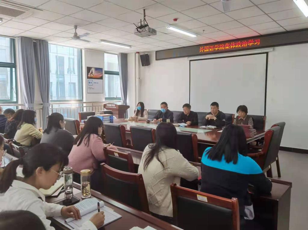 3月15日下午,外国语学院在院办402召开教职工集体学习会,会议由党总支书记张志强主持,院领导及全院教职工参加了会议。