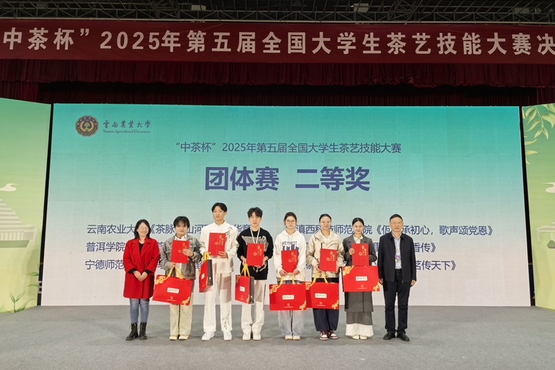 12月10日至12日,由高等学校国家级实验教学示范中心联席会主办,云南农业大学、云南中茶茶业有限公司承办的“中茶杯”2025年第五届全国大学生茶艺技能大赛在昆明举行。必赢766net手机版茶学院选派师生团队参赛,全国人大代表、茶学院教授郭桂义应邀担任大赛仲裁主任,茶学院教师王杉担任个人赛裁判。必赢766net手机版学生分别荣获茶艺技能个人赛一等奖三项,二等奖三项。