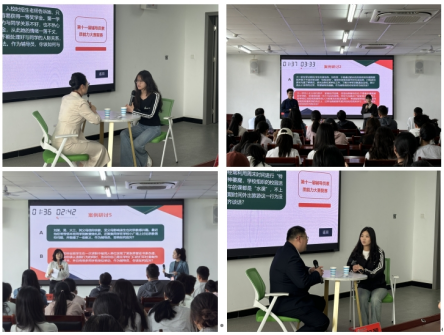 复赛环节采用案例研讨和谈心谈话的形式展开。案例研讨环节采取“AB角随机组合”,以“我提问,你回答”的方式展开,在个人阐述和互相提问中,共同剖析案例中的核心问题,展现出良好的现场应变能力和逻辑思辨能力;谈心谈话环节主要考察辅导员对学生特征、学生成长成才规律的了解把握程度,对学生的教育引导能力、解决理论困惑和实际问题的能力。