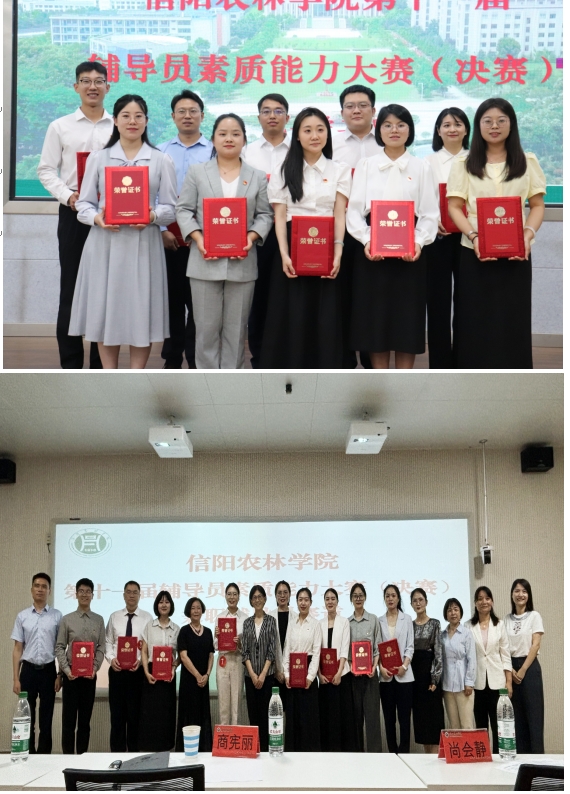 经过激烈角逐,专职辅导员赛道农学院陈秀云获得特等奖,体育学院钱媛、管理学院詹永吉获得一等奖,管理学院卢鑫、林学院齐阳阳、旅游学院秦双飞获得二等奖,食品科学与工程学院柳诚刚、药学院周启迪、外国语学院关迎雪、人文与传播学院赵中华获得三等奖;兼职辅导员赛道农学院蔡春丽获得特等奖,管理学院吴昊、农学院闻鑫茹获得一等奖,管理学院侯璐璐、风景园林艺术学院黄子庭获得二等奖,人文与传播学院李秀丽、外国语学院黄露露、信息工程学院王凯庆获得三等奖。