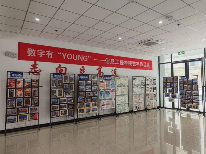 12月1日至5日,信息工程学院在双创一楼举办“数字有YOUNG”数字作品展。展览以党建为引领,紧扣“立德树人”根本任务,将思政教育与数字创作深度融合,集中呈现学生在数字技术应用与艺术创作领域的优秀成果。