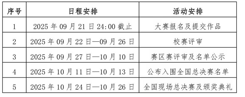 2025 年整体赛事工作部署,赛程分为:校赛、赛区赛(原省赛)及全国总决赛三个阶段。