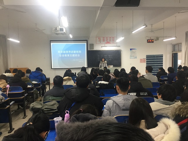 最后,各班辅导员从交通安全、用电防火安全、饮食安全,财产安全等方面向同学们再次强调了安全的重要性,希望同学们度过一个平安、快乐的寒假。