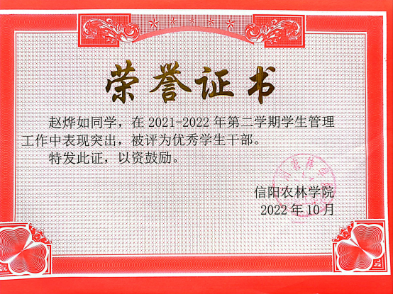 2021~2022学年获优秀学生干部