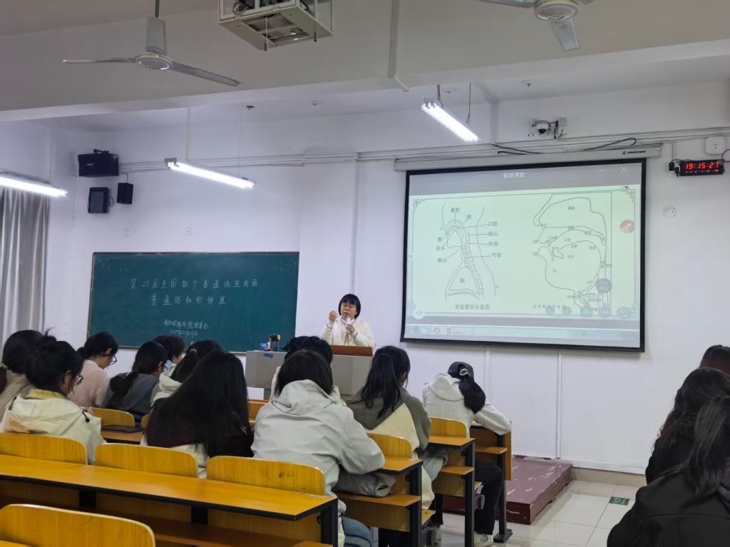 讲座内容紧密结合学生实际需求,系统梳理了普通话声、韵、调方面的基本知识,对普通话常见难点进行辨析,并为学生提供了行之有效的提升训练方法。同时,详细解读了国家普通话水平测试的完整流程、评分标准、注意事项以及备考策略,为有测试需求的学生提供了极具价值的指导。讲座现场互动积极,气氛热烈,老师们专业的讲解与耐心的答疑获得了在场同学的一致好评。