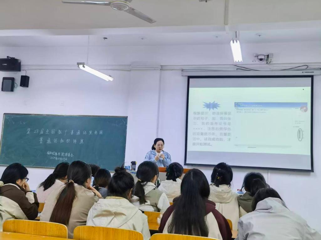 此次专题讲座是校语委办在本届推广普通话宣传周期间组织的重点活动之一,旨在通过专业引导,营造规范使用国家通用语言文字的良好校园氛围,有效助力学生普通话水平的提升,夯实学生语言能力基础,服务学校人才培养大局。活动吸引了众多对普通话学习及测试感兴趣的同学踊跃参与,取得了预期的良好效果。(撰稿/张华秋 摄影/张幼乔、李静、陈娅、张华秋 审核/何鑫 终审/张立恒)
