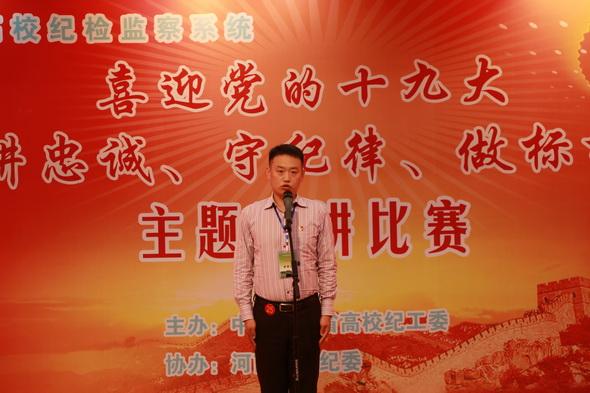 本次演讲比赛由中共河南省高校纪工委统一组织,目的在于持续推进“两学一做”学习教育常态化制度化,推动“讲忠诚、守纪律、做标杆”活动深入开展,进一步落实习近平总书记关于“打铁还需自身硬”的要求,激发广大纪检监察干部干事创业的热情,营造风清气正的政治生态,树立纪检监察干部忠诚、干净、担当的良好形象。(计陈)