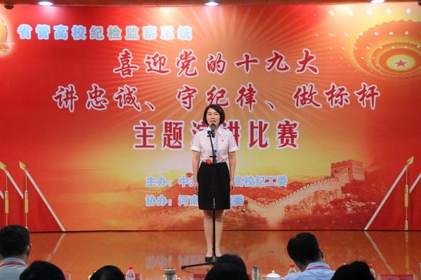 9月4日—6日,全省纪检监察系统“喜迎党的十九大,讲忠诚、守纪律、做标杆”主题演讲比赛(省管高校赛区)在河南大学报告厅举行,来自省管高校的46名选手参加了此次比赛,必赢766net手机版纪检监察干部陈婷、朱舒翼在比赛中获得佳绩。