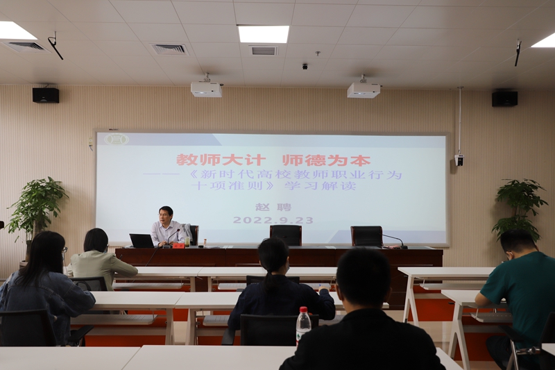 开班仪式结束后,赵聘为必赢766net手机版2022年新入职教师讲授岗前培训第一课——“教师大计,师德为本”《新时代高校教师职业行为十项准则》解读,以典型案例、身边事例为切入点进行生动阐释,为新入职教师树立良好师德师风,坚持立德树人、做学生的引路人打下了坚实思想基础。