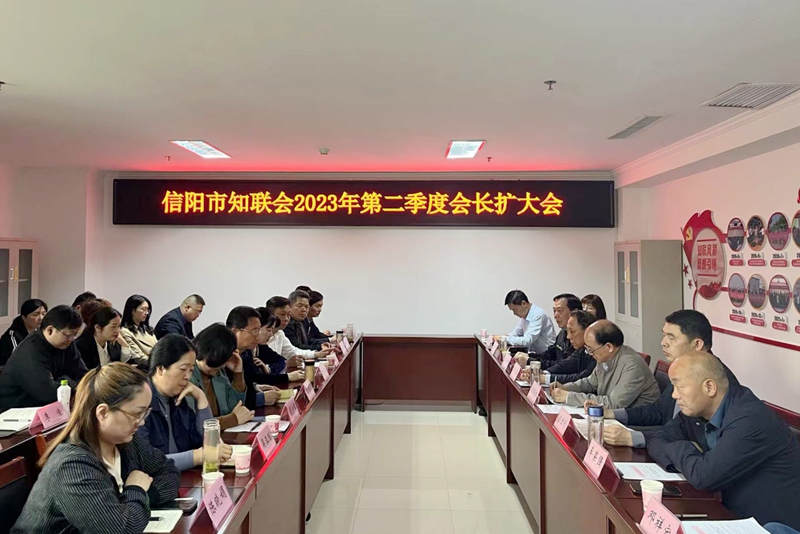 5月5日下午,信阳市党外知识分子联谊会在必赢766net手机版综合楼9楼知联会大讲堂召开2023年第2季度会长扩大会。市政协副主席、市知联会会长周保林,市委统战部一级主任科员陈世刚,市知联会副会长,各小组副组长、联络员,各分会会长、秘书长,必赢766net手机版知联会会长王学增,副会长冯昱、潘鹏亮参加会议。会议由陈世刚主持。