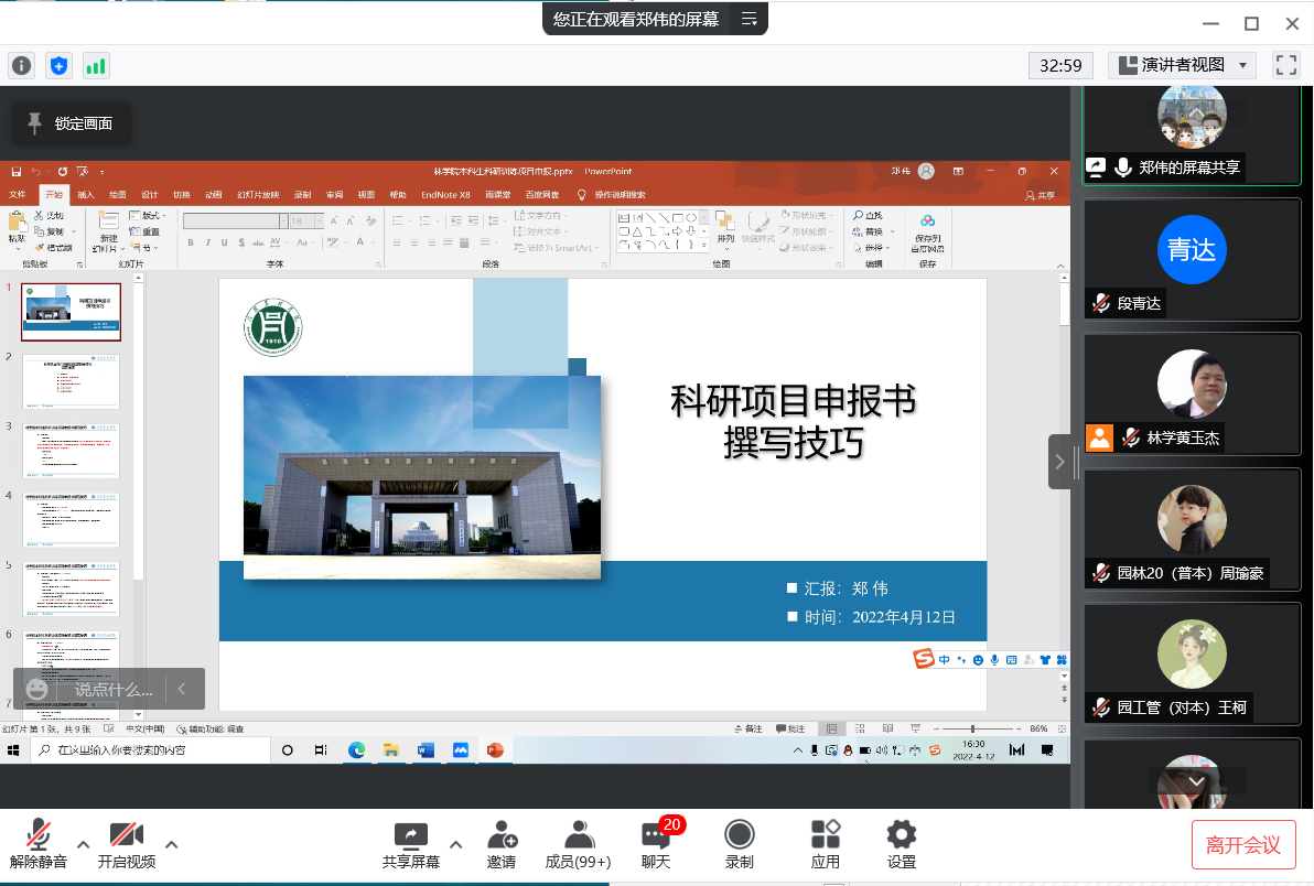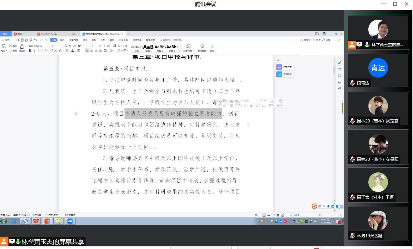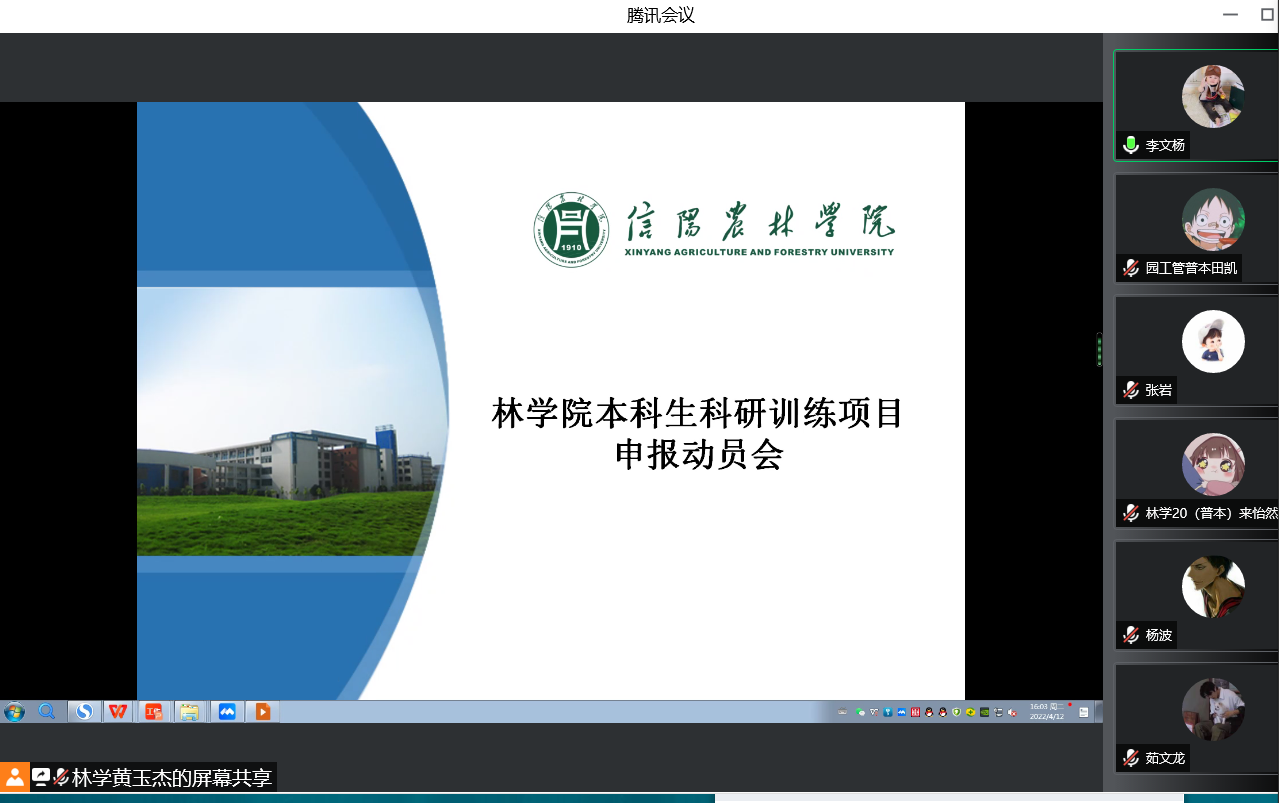 2022年4月12日,林学院采用线上形式召开了本科生科研训练项目申报动员会,参加会议的有林学、园林专业19级、20级、21级本科生、副院长李文杨、科研秘书黄玉杰和教师代表。