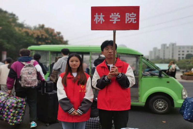 10月8日,我院迎新工作正式开始,值班志愿者们手持标有学院名称的指示牌,第一时间将新生带领到报到处。