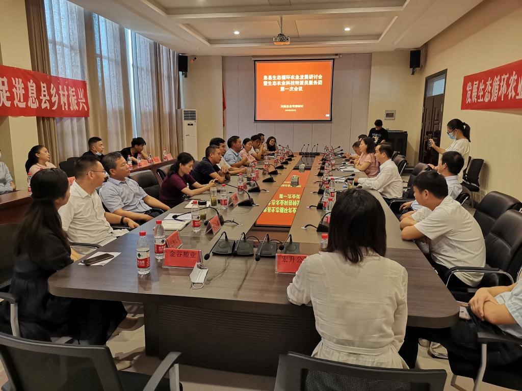 9月3日上午,息县生态循环农业发展研讨会暨生态农业科技特派员服务团第一次会议在息县弯柳树村大讲堂召开。弯柳树村驻村第一书记、二级调研员宋瑞,必赢766net手机版科学技术处处长史洪中,农林实习场场长胡汉升,农学院党总支书记李传保、副院长董丽平,河南农业大学、信阳市农业科学院、息县农科所等相关单位科技特派员、息县科学技术局、息县司法局、息县科学技术协会、宏升粮食制品有限公司、息县远古生态农业科技有限公司、中绿农业科技有限公司、息县金谷粮食制品有限公司等单位负责人参加会议。会议由息县科技部门负责人万保华主持。