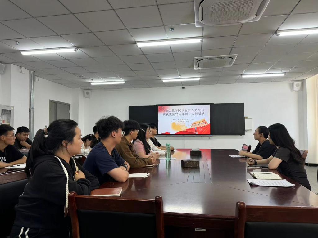 9月29日,为庆祝中华人民共和国成立75周年,传承红色基因,弘扬爱国精神,信息工程学院学生第二党支部组织举办庆祝建国75周年主题党日活动,主题党日活动内容为“我为祖国唱首歌”和爱国知识、廉洁知识竞答。全体党员与部分积极分子积极参与,共同为祖国母亲庆生。
